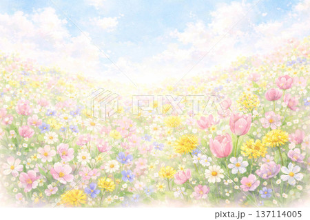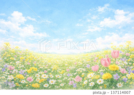 春花系列:色彩繽紛的春花田背景