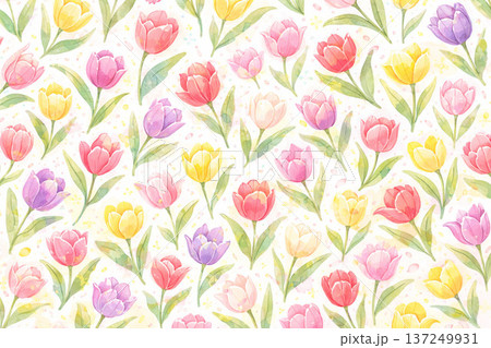 鬱金香系列:日式水彩背景,色彩繽紛的鬱金香呈現波浪狀排列。