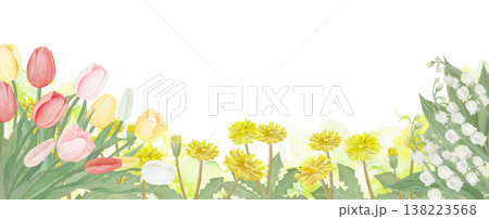 鬱金香邊框:色彩繽紛的春花背景(混合色)