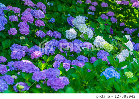 為雨季增添色彩的風景 色彩繽紛、美麗的繡球花