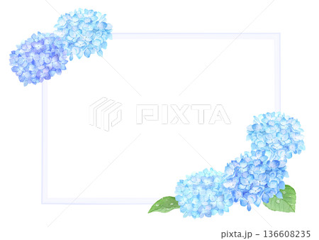雨天/梅雨季特別橫幅素材(繡球花和淺藍色背景)