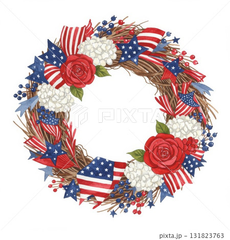 Patriotic Wreath with Red Roses and Hydrangeas
