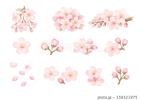 水彩畫的櫻花插圖