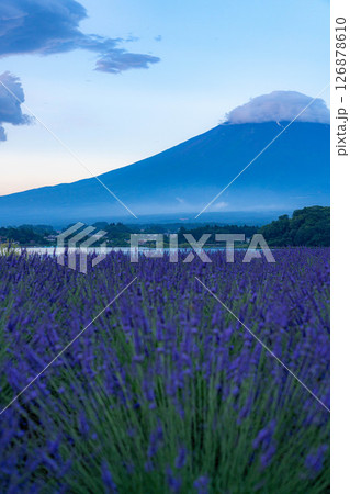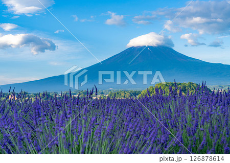 【夏日素材】清晨從河口湖眺望富士山和薰衣草【山梨縣】