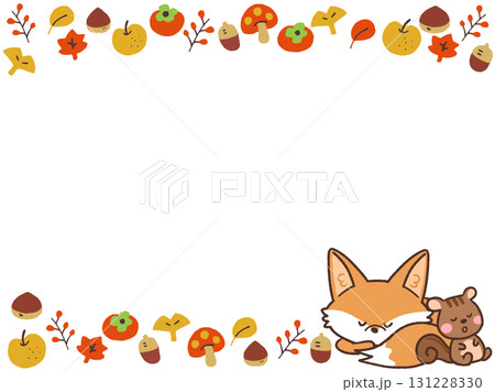 一隻兔子和一隻松鼠在秋天的森林裡相遇