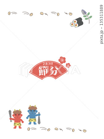 節分插畫框(紅鬼、藍鬼、冬青沙丁魚、豆子、江方捲背景素材)