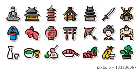 日本傳統文化圖標插圖集風俗、歷史、美食、建築、事件向量素材