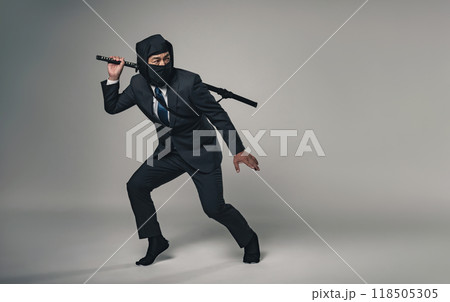 穿著西裝、用智慧型手機偷偷交談的忍者