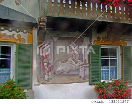 德國,巴伐利亞州,奧伯阿默高,壁畫小鎮,小紅帽之家