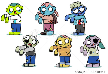 Set of halloween cute and spooky zombie character illustration . Hand drawn icon . Vector .