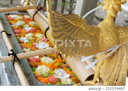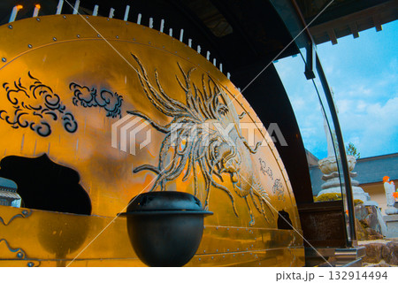 這是位於東京都江東區富岡八幡宮神社的金鳳凰雕像。