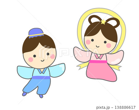 七夕節織姬和牛郎的可愛插畫