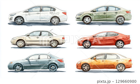 Car icon vector illustration set, cartoon vehicle set of automobile transport in a flat color
