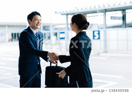 商務問候,握手。 “拍攝協助:關西國際機場(KIX)”