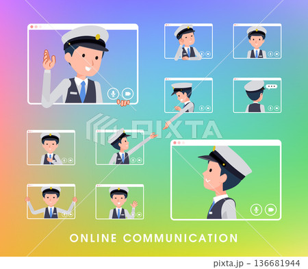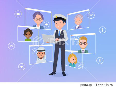 一群男性司機正在與多人進行線上會議。景深角度。