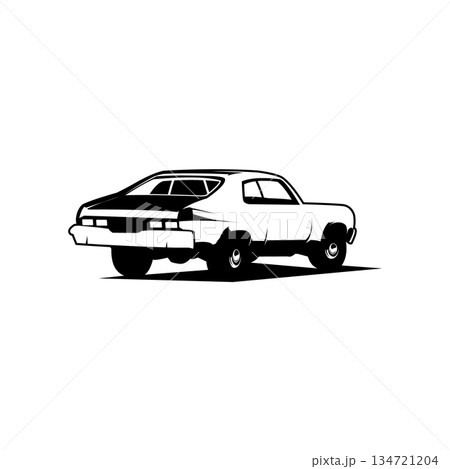 dusk vector illustration of 1968 ford mustang car isolated on white background view from behind. Very best for designing logos, badges, symbols and sticker designs.