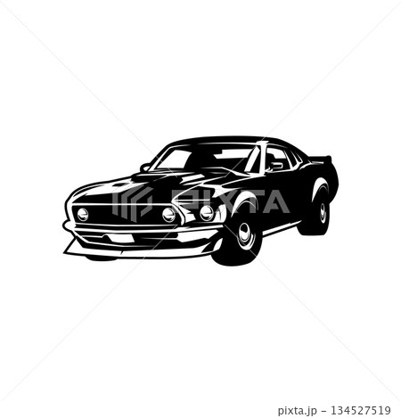 Isolated vector illustration of a vintage 1969 mustang car seen from the side. Best for badge, icon and sticker designs.