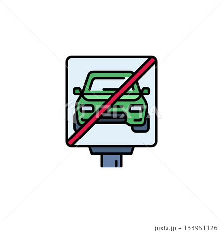 禁止停車標誌圖示插圖簡單向量素材與汽車插圖