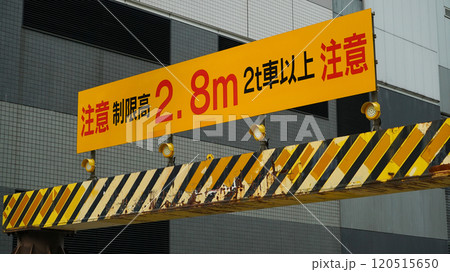 Height limit sign on the Japanese Road, Text means Caution for vehicles over 2.8m or 2 tons
