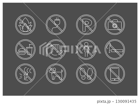 禁止標誌清單 禁止吸煙、禁止攜帶寵物、禁止攝影等標誌 招牌插圖 24 件套 圖示素材
