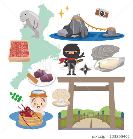 三重縣特產與旅遊景點圖示集 伊勢志摩特產向量圖