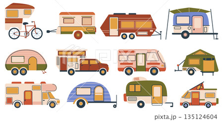 一組暗淡顏色的露營車插圖