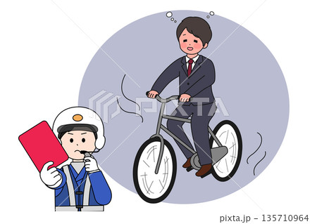 一名醉酒的商人騎著腳踏車,一名交警正在開罰單。
