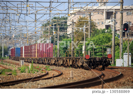 武藏野線上的一列貨運列車,上面有一系列貨櫃車廂