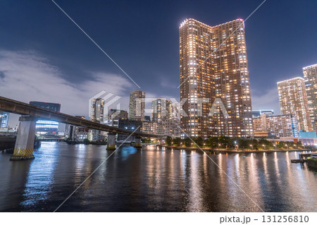 東京:港區芝浦灣地區的塔樓公寓夜景