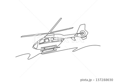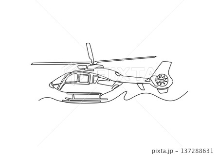 Single one line drawing nimble emergency response helicopter, perfect for urban or coastal patrol. Agility of the life-saving aircraft. Modern continuous line draw design graphic vector illustration