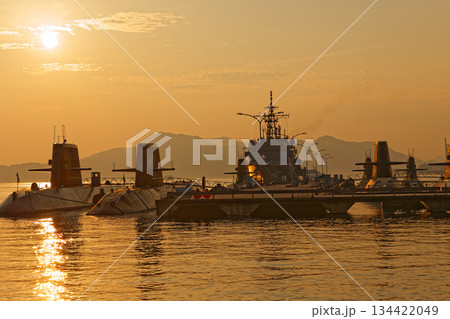 海上自衛隊艦艇停泊在吳港