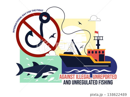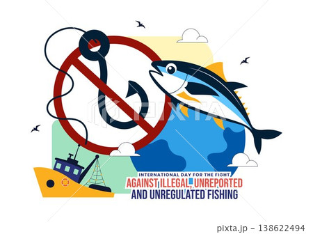 International Day For The Fight Against Illegal, Unreported, and Unregulated Fishing Illustration with Anti Fishing Ban Symbol Marine Protection