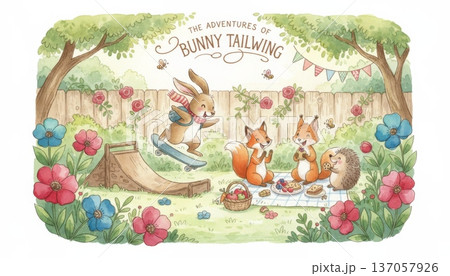 Bunny Skateboarding in the Backyard with Friends Enjoying Snacks and Having Fun