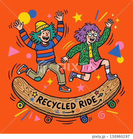 Dynamic skateboarder performing aerial trick capturing youthful energy and vibrant illustration on