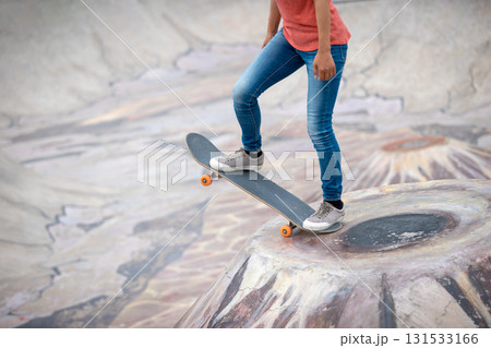 練習滑板的女人