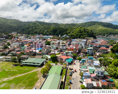 Costal town city with streets and houses. Romblon Island, Romblon, Philippines.