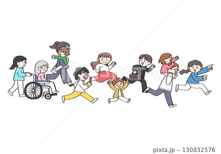 老年人、青少年、兒童和輪椅使用者的友善插圖