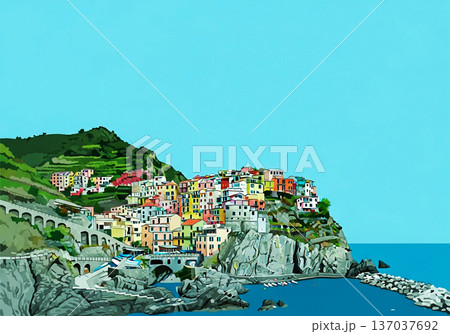 Colorful Coastal Village Illustration