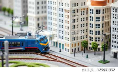 一輛電車在城市中穿梭的流行插畫