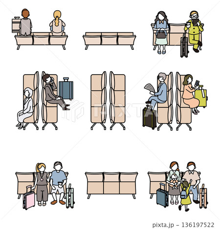 等軸測圖:機場長椅和乘客