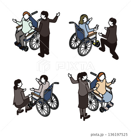 等距視角輪椅和護理人員場景,無障礙設施使用場景