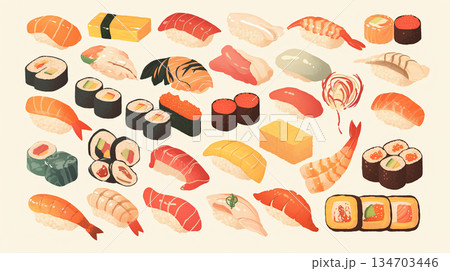 水彩插圖、手繪插圖、模擬插圖、海鮮散壽司