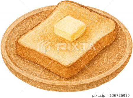 Hand drawn colored pencil white toast and butter illustration, New Zealand breakfast, transparent background