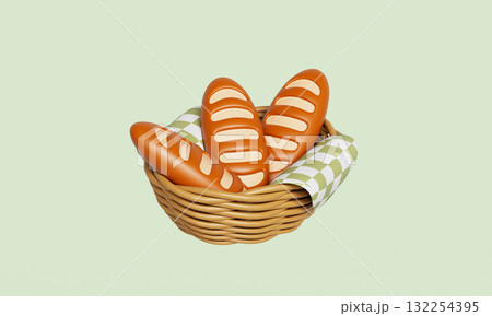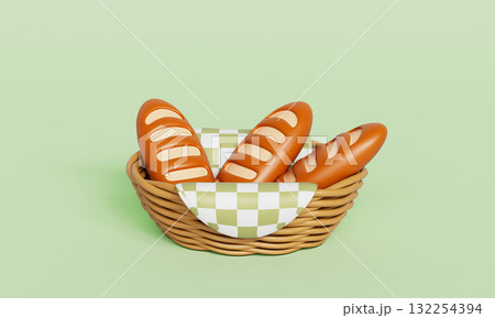 Baguettes and a Basket with Green Checkered Cloth. 3D Rendering.