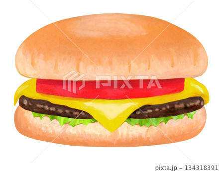 Delicious hamburger illustration featuring fresh ingredients and sesame seed bun