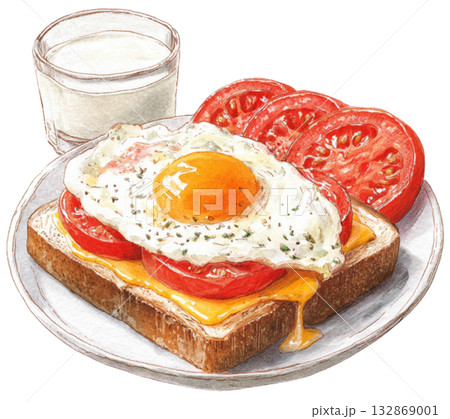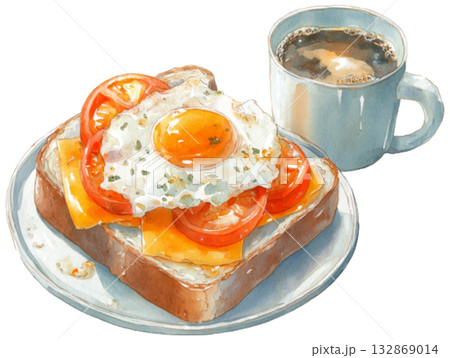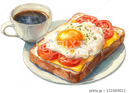 水彩煎蛋、烤麵包和咖啡