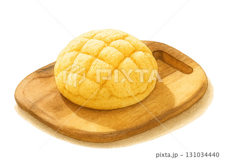 蜜瓜麵包的水彩插圖(橫切面,新鮮出爐,白色背景)