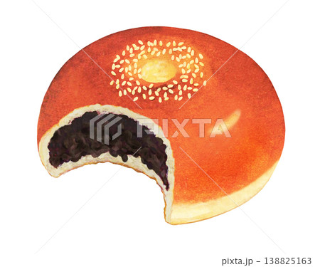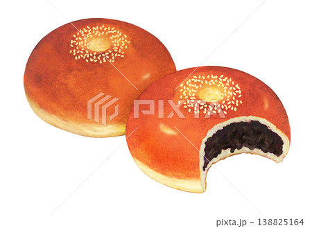 紅豆麵包的水彩插畫(豆沙餡、日式點心、黑芝麻、白色背景PNG素材)