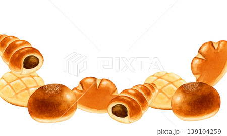 用水彩筆繪製的各種麵包的插圖(黑色背景)