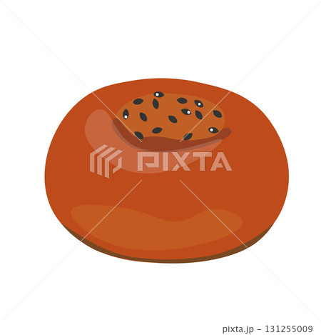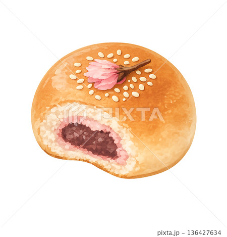 紅豆麵包的水彩插畫(豆沙餡、日式點心、黑芝麻、白色背景PNG素材)